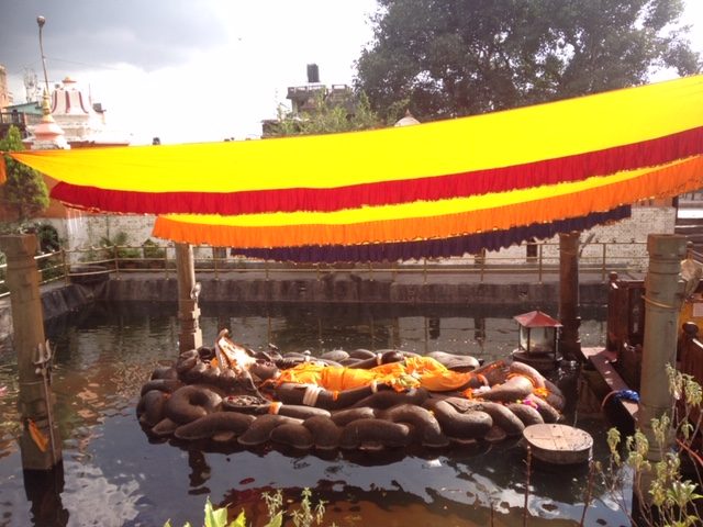 ‘Shivapuri’ is named after Lord Shiva, who is said to have resided on the top of the Shivapuri Hill; however, your trip begins with about 30 minutes drive from Kathmandu to Budhanilkantha, which is famous for a huge statue of Lord Vishnu (the Hindu god of preservation) reclining on top of Nagas (mythical serpents). The statue is in the midst of a small pond and is believed to have emerged naturally out of it, which is one reason why the locals have consecrated it. Another legend has it that this place must not be visited by the kings of Nepal because if they do, they will die. Hence, when Nepal was under the monarchy and had kings, none of them visited this place. Also, non-Hindus are not allowed to enter the temple here.